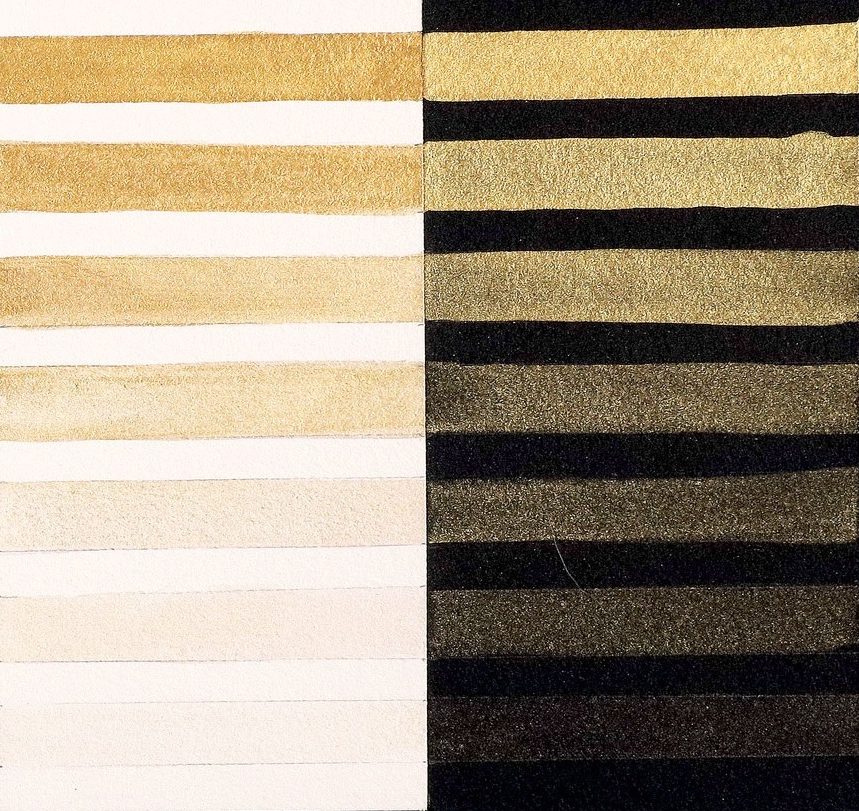 Interference watercolors have a low tint strength, so pay attention when mixing with other paints and only add a tiny bit of the other color at a time, mixing and testing between each addition. QoR Iridescent watercolors are stronger in tint strength than the Interference paints, but care should still be taken when creating mixes.