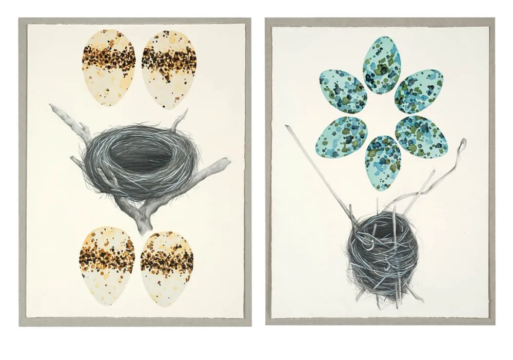 (L) Brood Parasite, Study 2, 15" x 11", Watercolor and graphite on paper, 2022, (R) Brood Parasite, Study 1, 15" x 11", Watercolor and graphite on paper, 2022